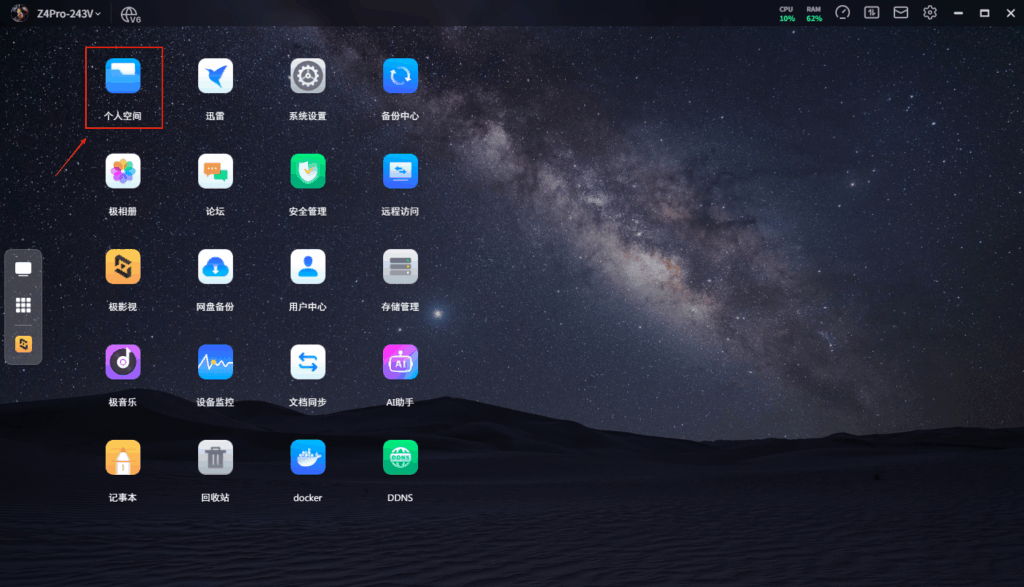 1. 打开电脑版极空间软饭,点击个人空间。