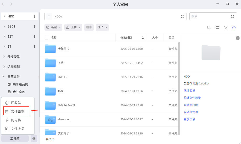 3. 点击文件去重。